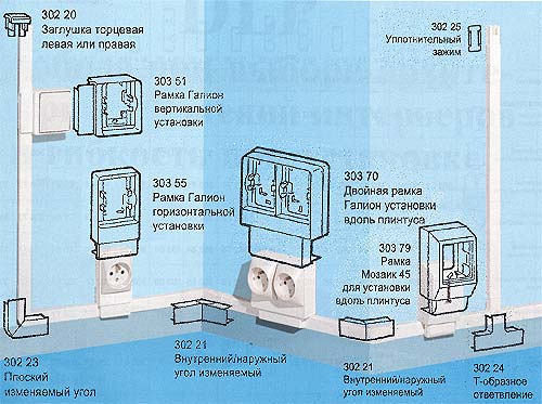 Для установки вдоль желоба Поставляется с планкой для разделения слабых и сильных токов Емкость: 2 модуля по 22.5 х 45 мм (кроме кат.N 742 03) |