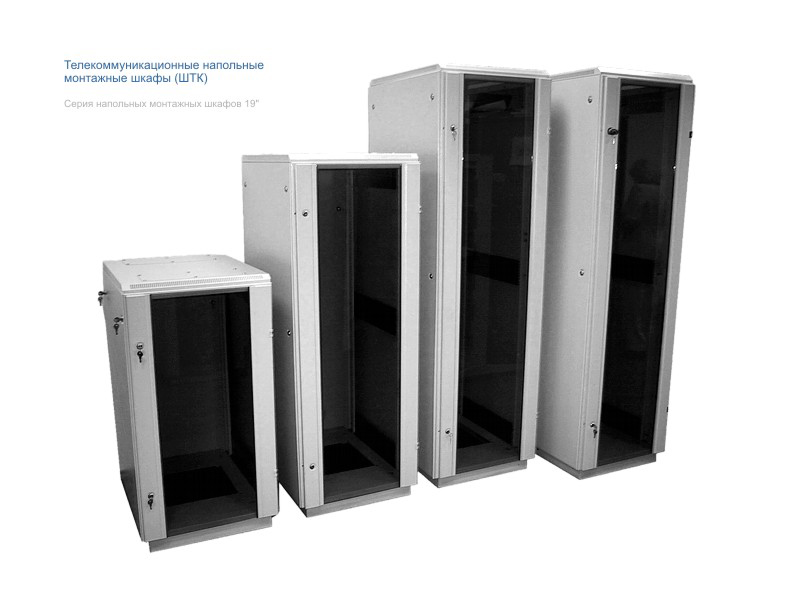 Шкафы телекоммуникационные напольные серии ШТК-М предназначены для размещения оптического и электротехнического оборудования систем передачи информации. Шкафы выполнены в системе несущих конструкций серии 482,6 мм по ГОСТ 28601.2 (19-дюймовые конструктивы по МЭК 297) и предназначены для эксплуатации в закрытых помещениях как офисного, так и промышленного типа. Шкафы изготавливаются в соответствии с ТУ и имеют сертификат соответствия Республики Беларусь и Российской Федерации.