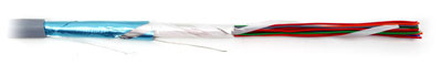 Экранированный медный кабель, 10 пар, изоляция — полиэтилен, оболочка — полиэтилен. Соответствует стандарту EIA/TIA 568-A для кабелей 3 категории.