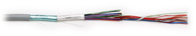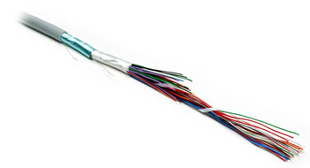 Экранированный медный кабель, 25 пар, изоляция — полиэтилен, оболочка — ПВХ. Соответствует стандарту EIA/TIA 568-B.2 для кабелей 3 категории.