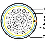 - Экран из алюминиевой ленты, проложенной вдоль сердцевины кабеля либо спирально накрученной с нахлестом 25% или 5 мм.