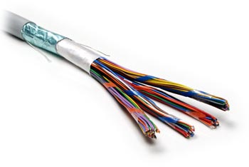 Экранированный медный кабель, 50 пар, изоляция — полиэтилен, оболочка — ПВХ. Соответствует стандарту EIA/TIA 568-B.2 для кабелей 3 категории.