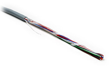 Неэкранированный медный кабель, 10 пар, изоляция — полиэтилен, оболочка — ПВХ. Соответствует стандарту EIA/TIA 568-B для кабелей 3 категории.