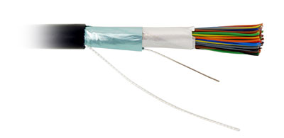 Экранированный медный кабель, 25 пар, изоляция — полиэтилен, оболочка — полиэтилен. Соответствует стандарту EIA/TIA 568-A для кабелей 3 категории.