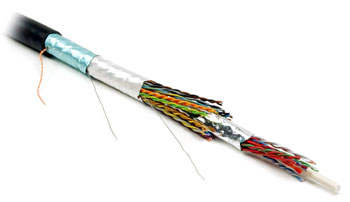 - 25 витых пар, уложенных в два слоя. Каждый слой экранирован фольгой и имеет дренажный провод.