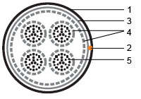 1 — Внешняя оболочка 2 — Рип-корд 3 — Защитная пленка 4 — Полимерная лента 5 — Витая пара solid |