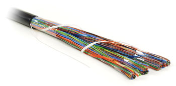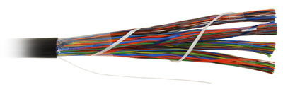 Неэкранированный медный кабель, 100 пар, изоляция — устойчивый к воздействию УФ лучей полиэтилен, оболочка — полиэтилен.