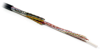 Неэкранированный медный кабель UTP, 25 пар, изоляция — устойчивый к воздействию УФ лучей полиэтилен, оболочка — полиэтилен.
