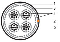 1 — Внешняя оболочка 2 — Рип-корд 3 — Защитная пленка 4 — Полимерная лента 5 — Витая пара solid |