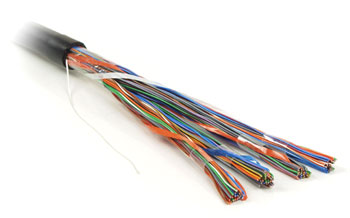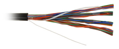Неэкранированный медный кабель, 50 пар, изоляция — устойчивый к воздействию УФ лучей полиэтилен, оболочка — полиэтилен.
