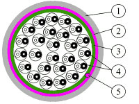 Разрез кабеля: 1 — оболочка; 2 — фольга; |