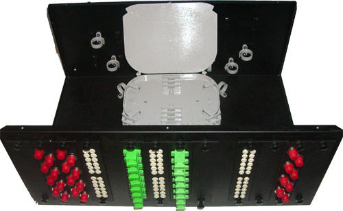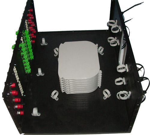 до 96 адаптеров, либо до 288 выводов под пигтейлы. Установка в стойку для оборудования или на поверхность.